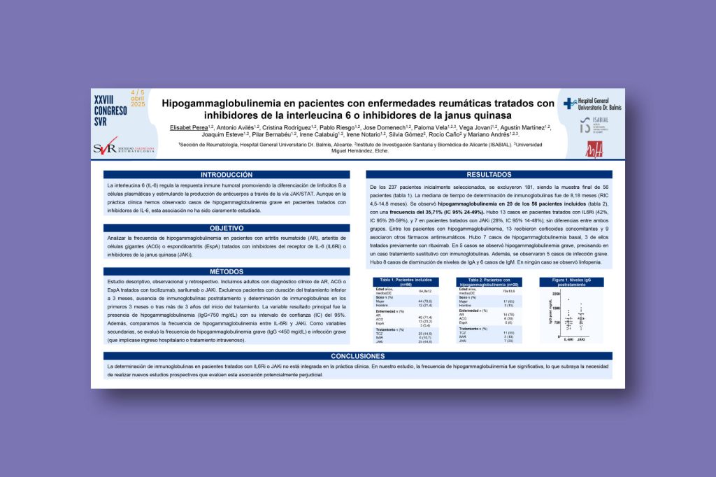 Hipogammaglobulinemia en pacientes con enfermedades reumáticas tratados con inhibidores de la interleucina 6 o inhibidores de la janus quinasa