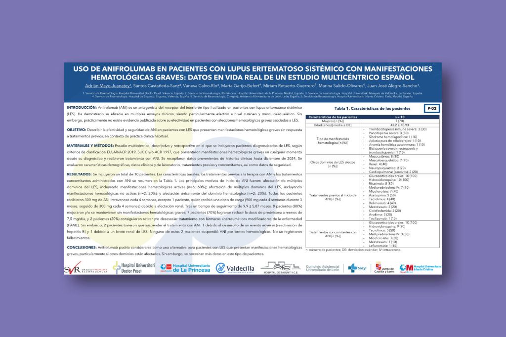 Uso de anifrolumab en pacientes con lupus eritematoso sistémico con manifestaciones hematológicas graves: datos en vida real de un estudio multicéntrico español