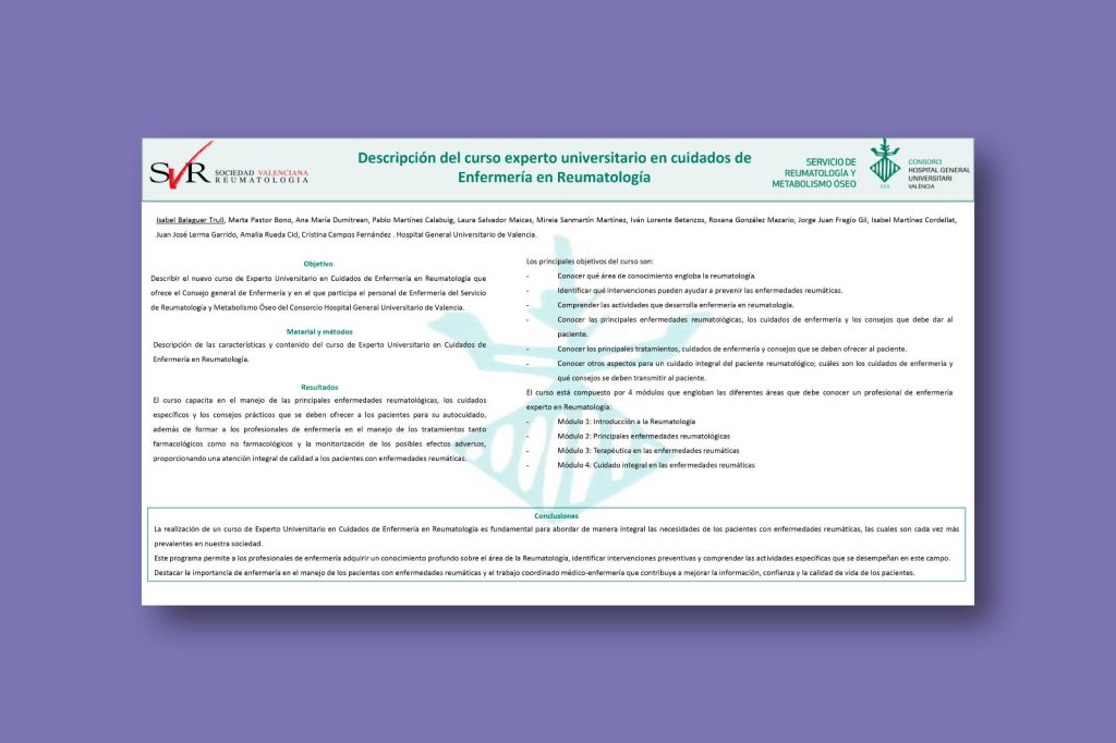 Descripción del curso experto universitario en cuidados de enfermería en reumatología