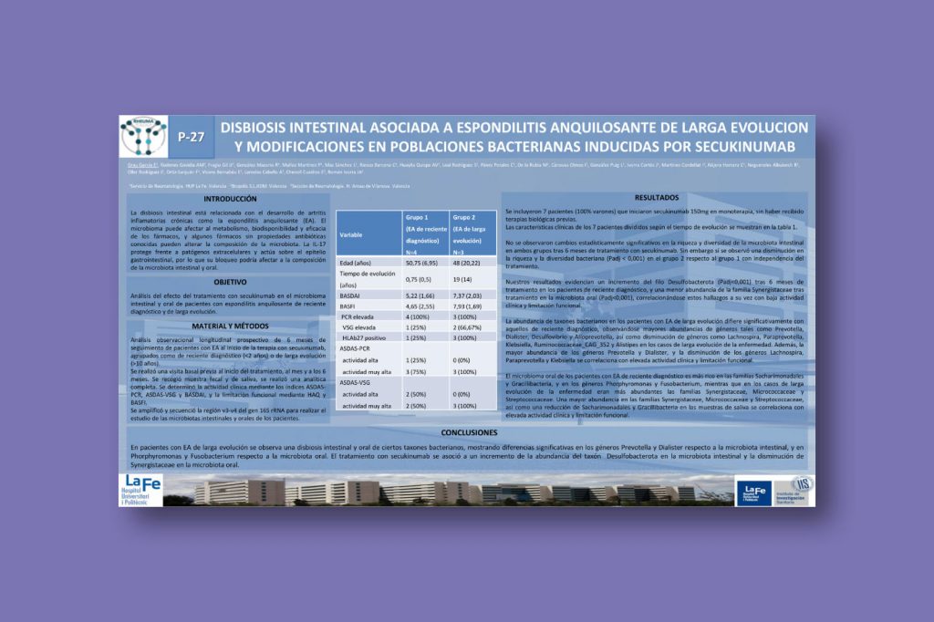 Disbiosis intestinal asociada a espondilitis anquilosante de larga evolución y modificaciones en poblaciones bacterianas inducidas por secukinumab
