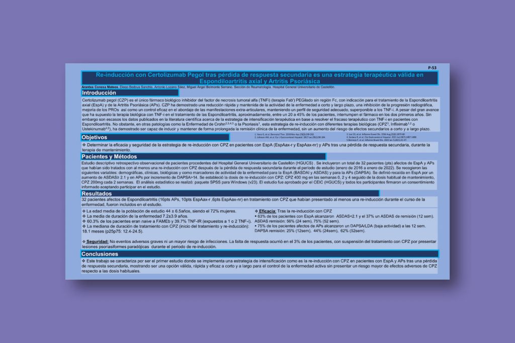Re-inducción con Certolizumab Pegol tras pérdida de respuesta secundaria es una estrategia terapéutica válida en Espondiloartritis axial y Artritis Psoriásica