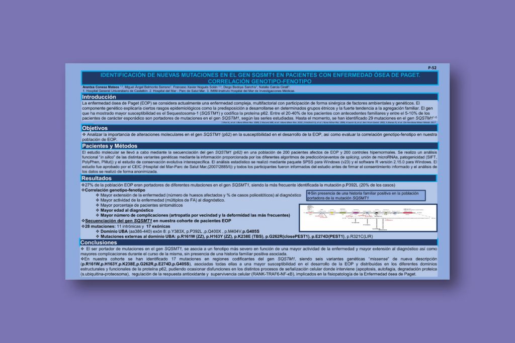 Identificación de nuevas mutaciones en el gen SQSMT1 en pacientes con enfermedad ósea de Paget. Correlación genotipo-fenotipo
