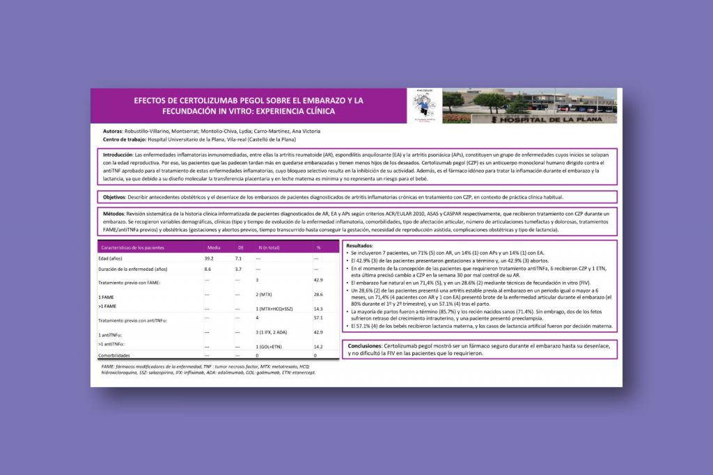 Efectos de certolizumab pegol sobre el embarazo y la fecundación in vitro: Experiencia clínica