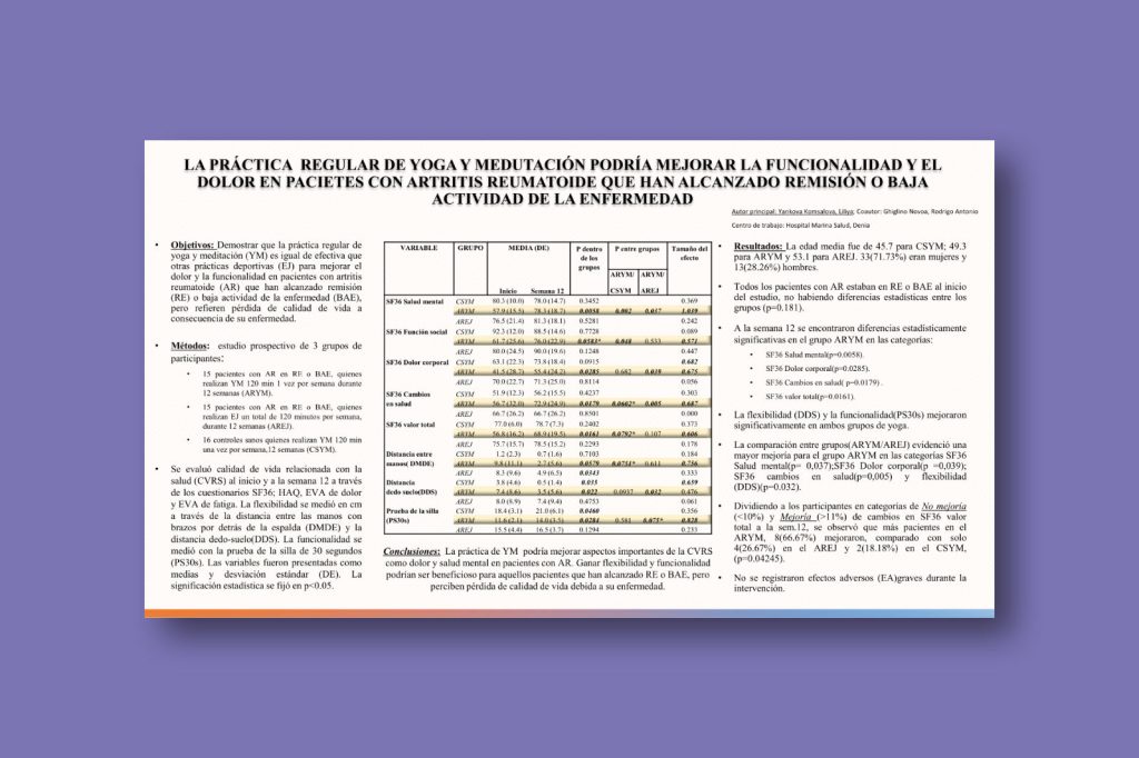 La práctica regular de yoga y meditación podría mejorar la funcionalidad y el dolor en pacientes con artritis reumatoide que han alcanzado remisión o baja actividad de la enfermedad