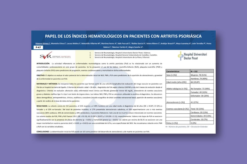 Papel de los índices hematológicos en pacientes con artritis psoriásica