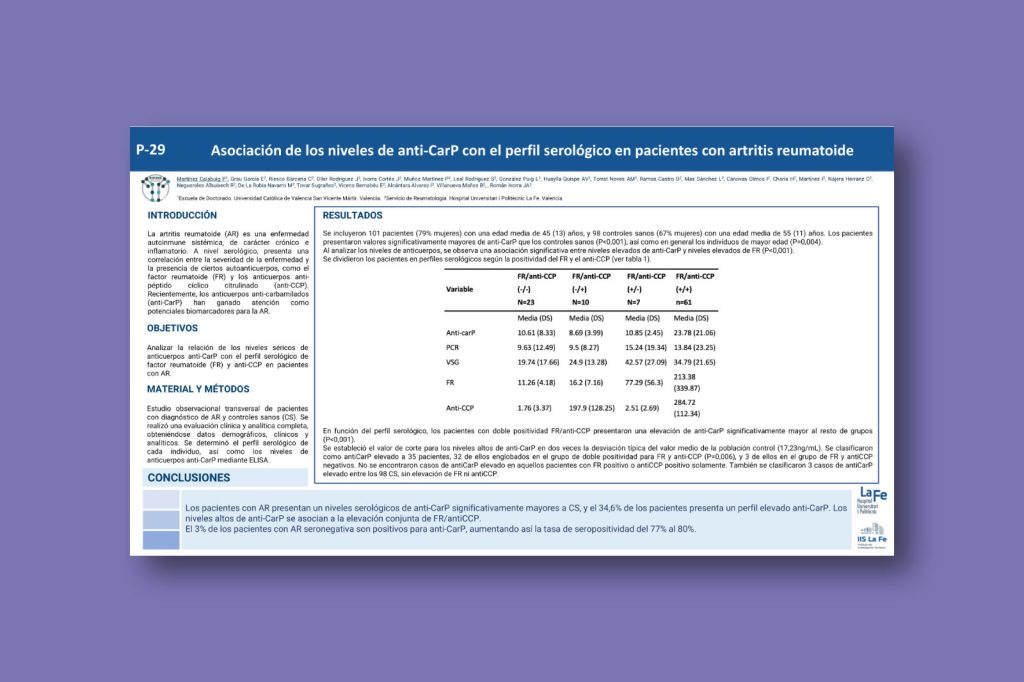 Asociación de los niveles de anti-CarP con el perfil serológico en pacientes con artritis reumatoide