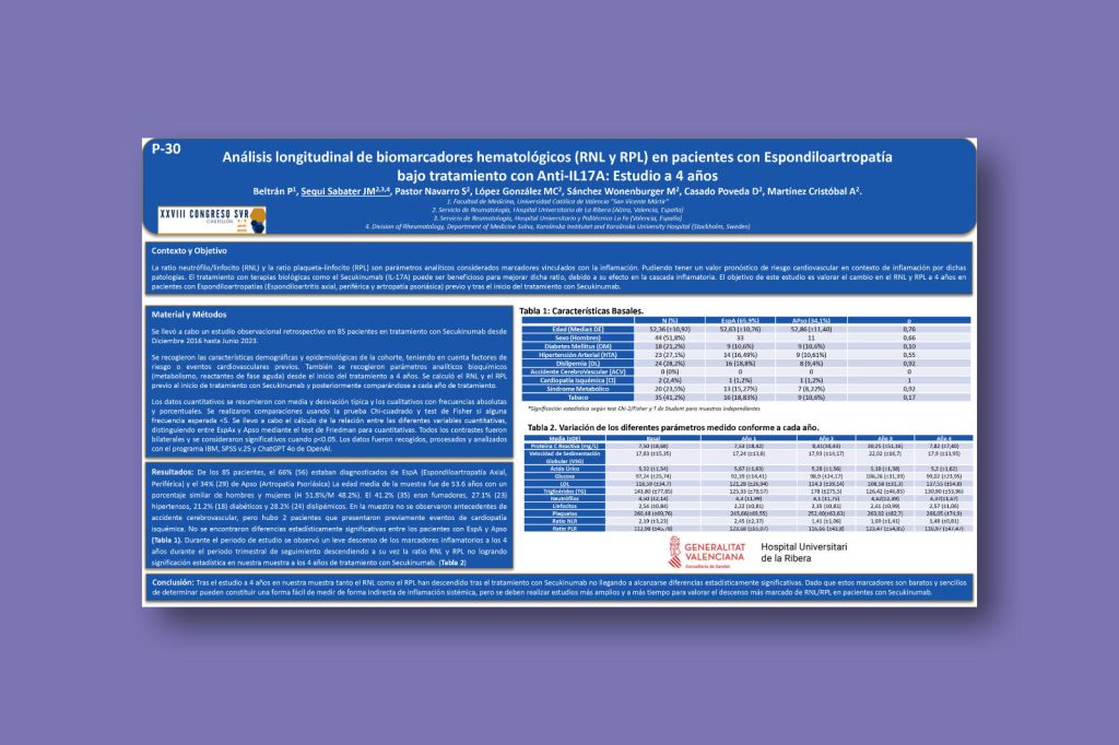 Análisis longitudinal de biomarcadores hematológicos (RNL y RPL) en pacientes con Espondiloartropatía bajo tratamiento con Anti-IL17A: Estudio a 4 años